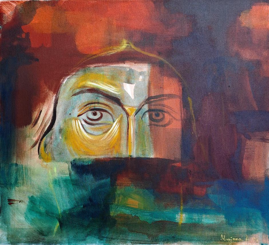 У том смислу, човек стваралац је центар овог уметничког модела света, који у себи као ствараоцу – и то док ствара – спаја унутрашње и спољашње светове, проживајући их без видљивог шава али и без схематичне аналогичности на којима се заснивају сржне езотеријске и херметичке доктрине у односу микро и макрокосмоса, малог и великог, „горњег“ и „доњег“. Ако у овом раду и има езотеријске симболике, она нипошто није доктринарна, већ је само један од елемената овог света, који се беспоштедно преображава у ковитлацу сусрета за непознатим, са силом који ни један наш симбол, није једно слово, реч или мисао не могу да понесу, поднесу, изнесу, изразе, а да остану оно што су били или што ми мислимо да јесу или што бисмо хтели да они буду. Зато нам се, поред свог тог галиматијаса представа и симбола на овим сликама, где се чини да једино тројична симболика и образац имају некакву трајнију постајаност, ипак чини да та сила није било која и каква, него да је она сам Бог, који све време као да жели да груне из тих слика, кроз њих, упадне међу нас, али то не чини само из љубави, како нас овакве какви не би самлео и сагорео својом истином и добротом. Али као да се једва суздржава, држећи све време прст на обарачу, упозоравајући нас, кроз шапат, да нам се време ближи, да час само што није дошао.